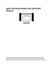Read answer key for apex personal finance PDF online is a convenient and frugal way to read answer key for apex personal finance you love right from the comfort of your own home. Yes, there sites where you can get PDF "for free" but the ones listed below are clean from viruses and completely legal to use.